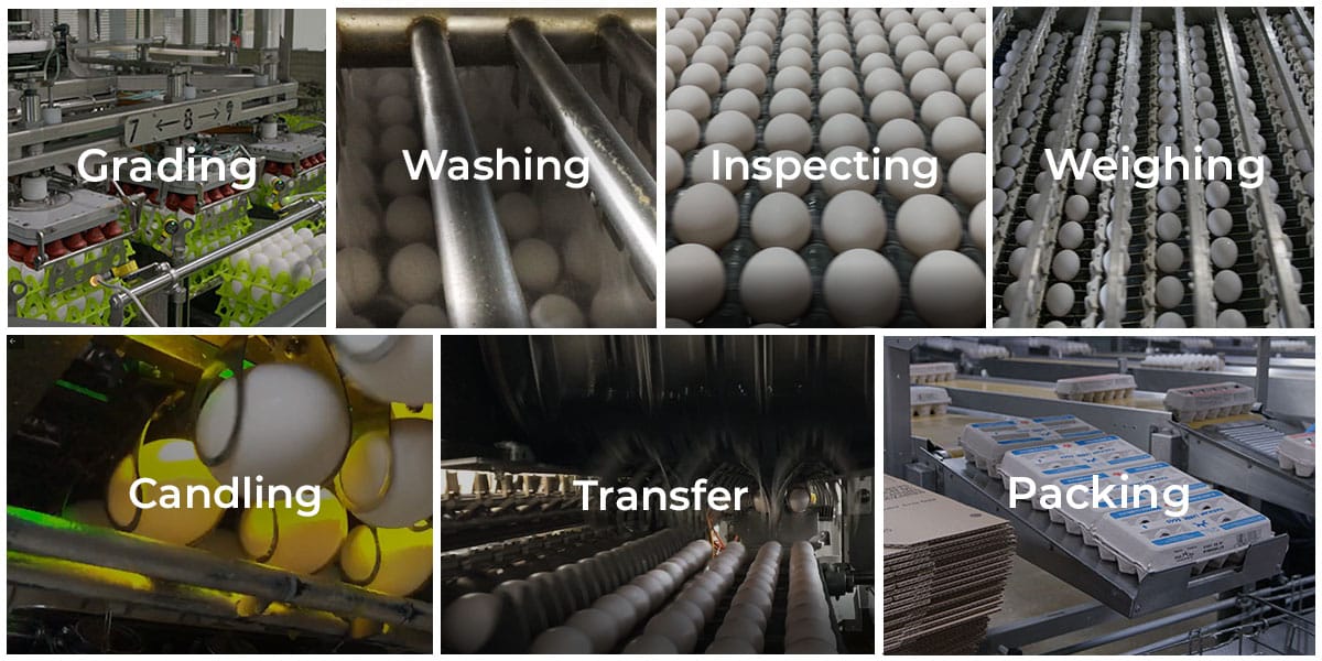 Egg grading involves cleaning, sanitizing, sorting and packaging eggs to prepare them for the grocery store. To see how the Egg Grading Process works, click here.